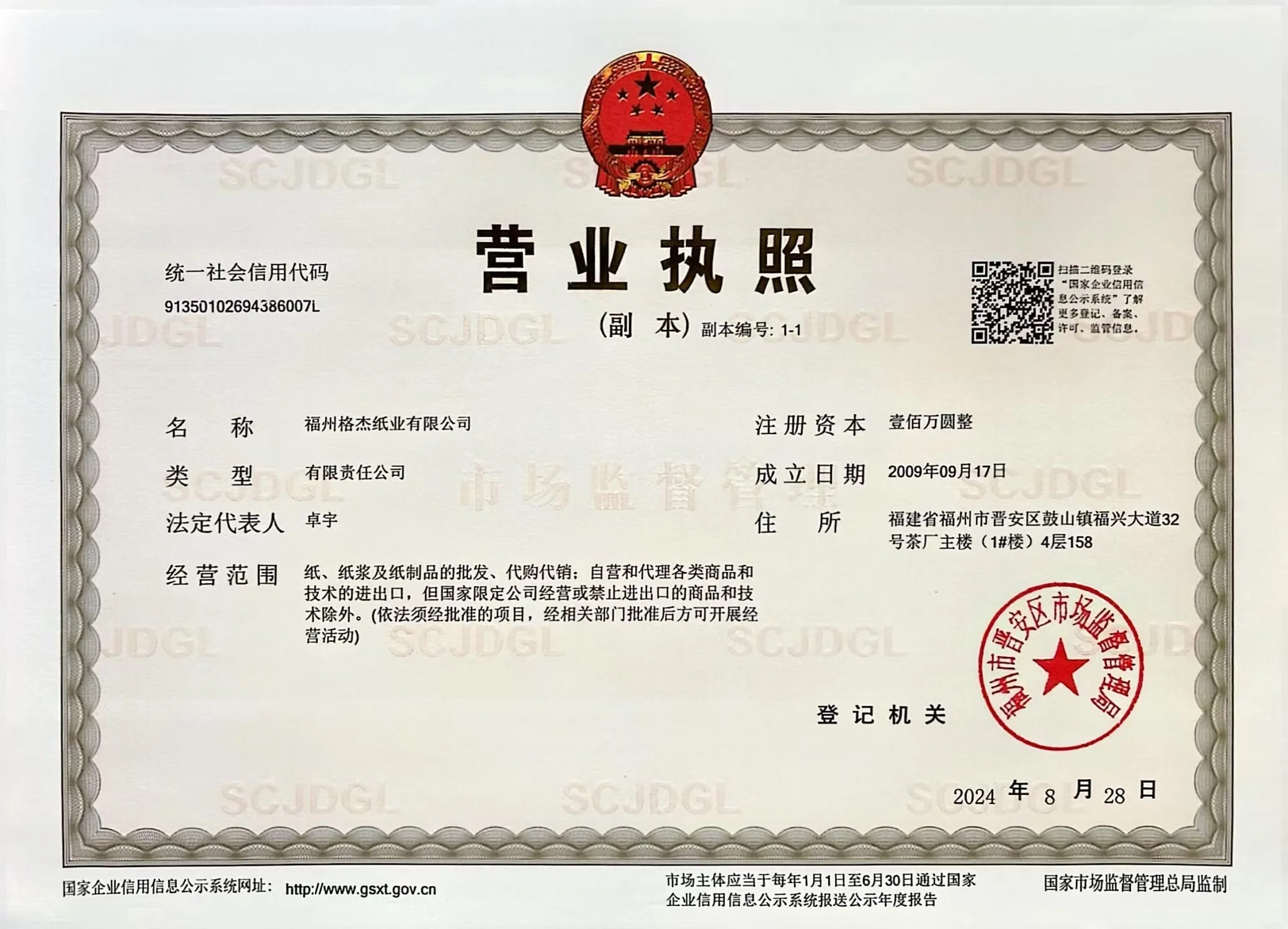 Company Name : Fuzhou G&j Paper Co., Ltd.